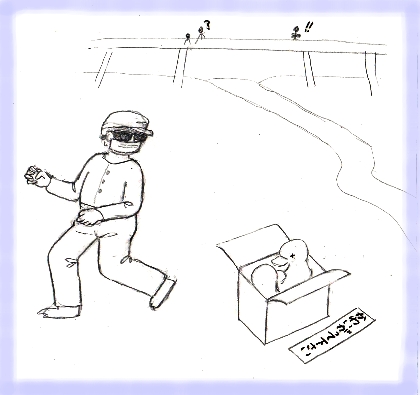 早朝 ダンボールに入れた ヘンリーとアリスを、棟梁と2 人で川原に運んだ。